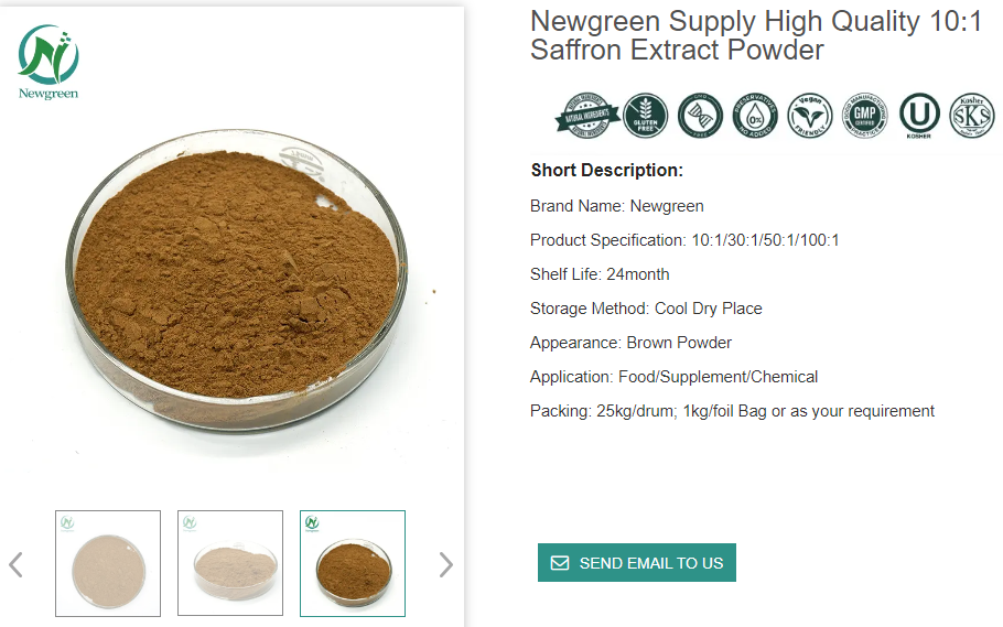1. Antioxidant: Crocin has the effect of scavenging free radicals and can significantly inhibit the damage of vascular smooth muscle cells and endothelial cells induced by hydrogen peroxide.