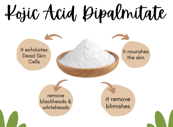 Kojinsyradipalmitat (CAS-nr: 79725-98-7) är ett förestrat derivat av kojinsyra, som framställs genom att kombinera kojinsyra med palmitinsyra. Dess molekylformel är C₃₈H₆₆O₆ och dess molekylvikt är 618,93. Kojinsyra härleddes ursprungligen från fermenteringsprodukterna från svampar som Aspergillus oryzae och används ofta för livsmedelskonservering och vitgörande, men dess vattenlöslighet och instabilitet mot ljus, värme och metalljoner begränsar dess tillämpning. Kojinsyradipalmitat modifieras genom förestring, vilket inte bara bibehåller kojinsyrans vitgörande aktivitet, utan också avsevärt förbättrar dess stabilitet och fettlöslighet, vilket gör den till en stjärningrediens i kosmetikaindustrin.