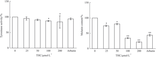 Tetrahydrokurkumin kan hämma tyrosinasaktivitet i B16F10-celler. När motsvarande koncentration av tetrahydrokurkumin (100 och 200 μmol/L) gavs till cellerna minskade den intracellulära tyrosinasaktiviteten till 84,51 % respektive 83,38 %.
